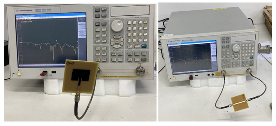 A general good agreement was obtained between the simulation and experimental results. The ripple in the experimental results was caused by the reflections on the objects present in the non-anechoic environment of the laboratory. The transmission coefficient results depended on the polarization (horizontal-H or vertical-V) of the incident electric field. However, the first resonance frequency was the same for both polarizations (1.75 GHz), but the −10 dB bandwidth was larger for the vertical polarization (19.8% and 10.0%).