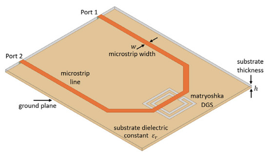 - Neto, A.G.; Silva, J.C.; Coutinho, I.B.G.; Camilo Filho, S.S.; Santos, D.A.; Albuquerque, B.L.C. A Defected Ground Structure Based on Matryoshka Geometry. J. Microw. Optoelectron. Electromagn. Appl. 2022, 21, 284–293. [Google Scholar] [CrossRef]