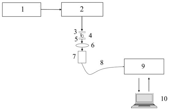 A schematic of the LIFs system is shown in Figure 7. A 50 mW, 451 nm diode laser is powered by a power width modulation module, which controls the average power emitted by the laser. A laser beam is focused on the sample using a lens, and a spectrometer reads the optical signal through light-gathering optics and a cut-off long-pass filter to prevent a Raylight scattering effect. The acquisition and control unit controls the PWM module and reads data acquired from the spectrometer.