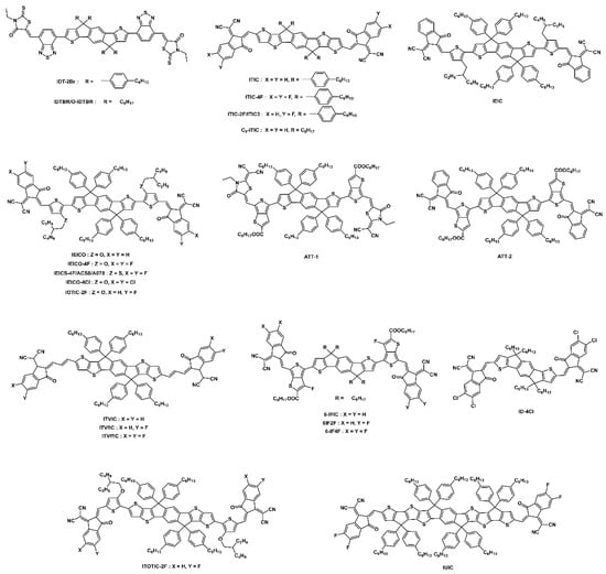 3.1.1. Indacenodithiophene (IDT)- and Indacenodithienothiophene (IDTT)-Based Acceptors