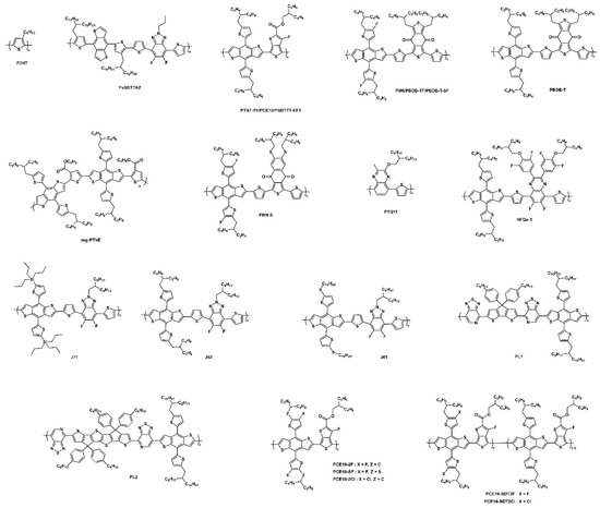 - Zhang, Q.; Yan, L.; Jiao, X.; Peng, Z.; Liu, S.; Rech, J.J.; Klump, E.; Ade, H.; So, F.; You, W. Fluorinated Thiophene Units Improve Photovoltaic Device Performance of Donor–acceptor Copolymers. Chem. Mater. 2017, 29, 5990–6002. [Google Scholar] [CrossRef]