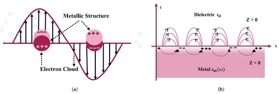 SPR is a viable methodology for gaining insights into the optical characteristics of nanomaterials. SPR-based nanosensors are a configurable innovation for biological modeling approaches. SPR is associated with charge density oscillations at the interface between a metallic layer and a dielectric layer [] (shown in Figure 2a) because it responds to the optical characteristics of the metal nanostructure [] and environmental variations. As a consequence, biomoleculars are extremely sensitive to plasmon resonance, obviating the need for exogenous biomolecular labeling []. SPR can form in these circumstances [].