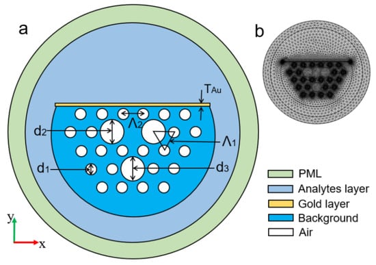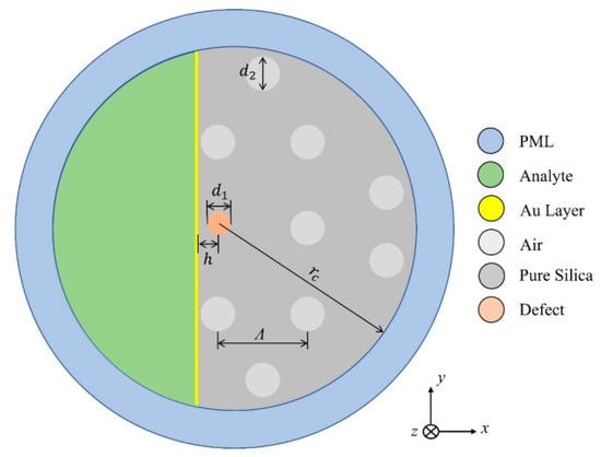 - Singh, S.; Chaudhary, B.; Upadhyay, A.; Sharma, D.; Ayyanar, N.; Taya, S.A. A Review on Various Sensing Prospects of SPR Based Photonic Crystal Fibers. Photonics Nanostructures-Fundam. Appl. 2023, 1, 101119. [Google Scholar] [CrossRef]