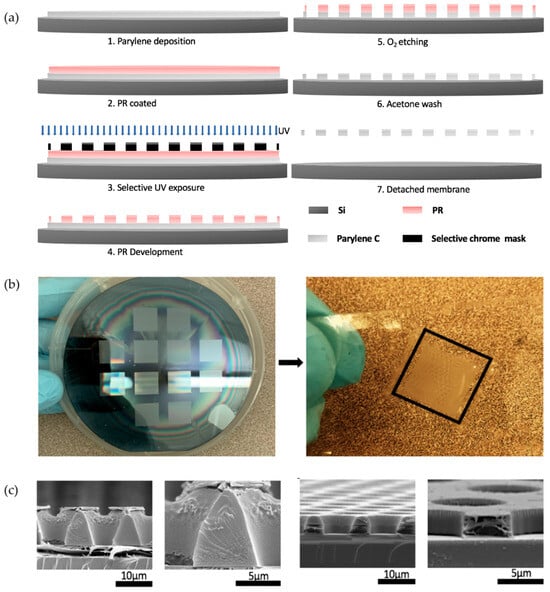 2.2. Fabrication of Microarrayed Porous Parylene Membrane