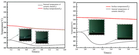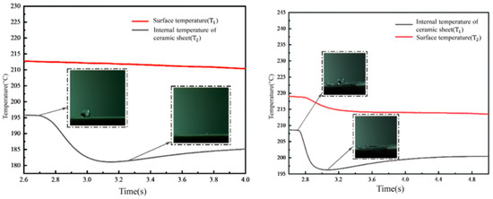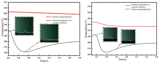 Droplet impact wall experiments use high-speed photography to measure the evolution of the dynamic behavior of the process. A K-type thermocouple wire was used to determine the wall temperature, and ceramic internal temperature measurements were made to determine the absolute temperature of the two measurement points using the formula for calculating the heat flow density.