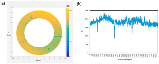 Figure 12. (a) Two-dimensional and (b) one-dimensional data of molten pool radiation.