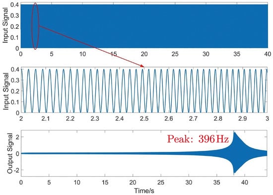 As shown in Figure 14, the first-order natural frequency obtained by sinusoidal frequency sweeping of the amplification module is 396 Hz, which is similar to the result of 334.5 Hz obtained by simulation. The ZTT workspace encompasses the Z-direction feed micro motion stroke, the yaw motion stroke, and the rotation motion stroke. As shown in Figure 15a, the step voltage signals (0–10 V) applied to the three piezoelectric drive amplification modules are amplified by a piezoelectric ceramic voltage driver by a factor of 15. The resulting output terminal displacements are measured by capacitive displacement sensors.