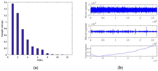 Classification results. (a) SE value of each IMF. (b) Examples of different segments.