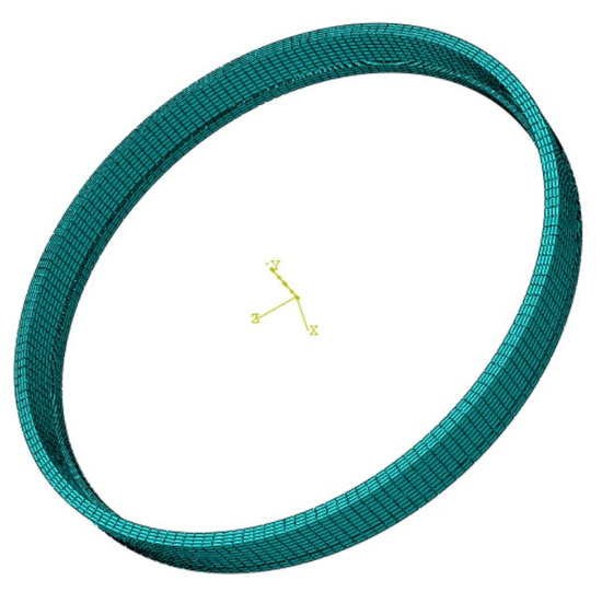 The grinding process of the outer ring of the bearing collar is carried out on a centerless grinding machine, and in the centerless grinding process, if the grinding parameters are not properly selected, it can lead to serious deformation [14]. The main technical indexes of bearing outer ring grinding processing include surface roughness, ellipticity, inner diameter size, wall thickness difference, vibration pattern and burns, etc., and the deformation and surface roughness are also important factors affecting the performance of bearings [15,16]. Processing quality is mainly concerned with two aspects: on the one hand, the processing-induced deformation of the outer ring, which is mainly reflected by the two parameters of dimensional change and ellipticity change; on the other hand, the surface quality, which is analyzed by the roughness change brought about by grinding. The relationship between outer ring deformation and residual stress is also analyzed through simulation. The research content of the article helps to achieve a balance between high surface quality and reduced deformation. The study realizes the reduction in deformation during the machining process which is instructive for practical machining and can improve the production efficiency of enterprises.