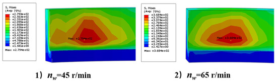 (2) With the increase in workpiece speed and grinding wheel speed, the heat flux in the grinding area increases, which leads to the increase in grinding temperature and residual stress on the inner surface of the bearing outer ring. In the study, an increase in workpiece speed resulted in a 31.8% increase in stress, and an increase in grinding wheel speed resulted in a 40% increase in stress. The excessive stress makes the deformation of the outer ring more obvious.