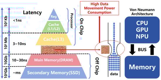 The “Memory/Power Wall” bottlenecks of the Von Neumann architecture. The Von Neumann bottleneck introduces substantial power consumption and transmission latency, which are caused by the movement of data.