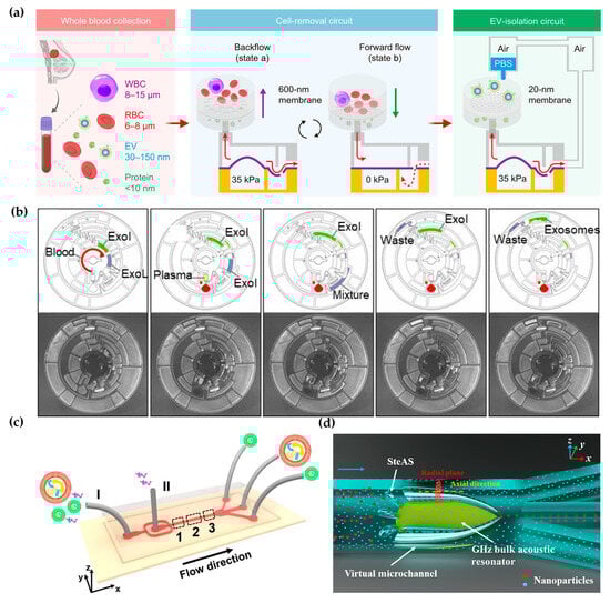 - Han, Z.; Peng, C.; Yi, J.; Zhang, D.; Xiang, X.; Peng, X.; Su, B.; Liu, B.; Shen, Y.; Qiao, L. Highly Efficient Exosome Purification from Human Plasma by Tangential Flow Filtration Based Microfluidic Chip. Sens. Actuators B Chem. 2021, 333, 129563. [Google Scholar] [CrossRef]