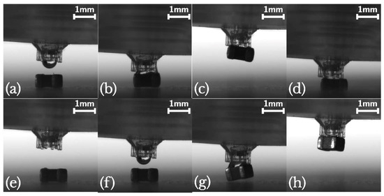 Microgripper working phases: component-gripping frames are (a–c) and (g,h); component-releasing frames are (d–f). Reprinted from [45].