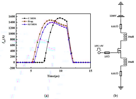 (a) The short-circuit waveforms for three different structures. (b) The short-circuit test circuits.
