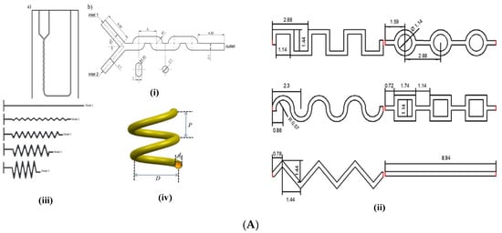- Tripathi, E.; Patowari, P.K.; Pati, S. Comparative assessment of mixing characteristics and pressure drop in spiral and serpentine micromixers. Chem. Eng. Process. Process Intensif. 2021, 162, 108335. [Google Scholar] [CrossRef]