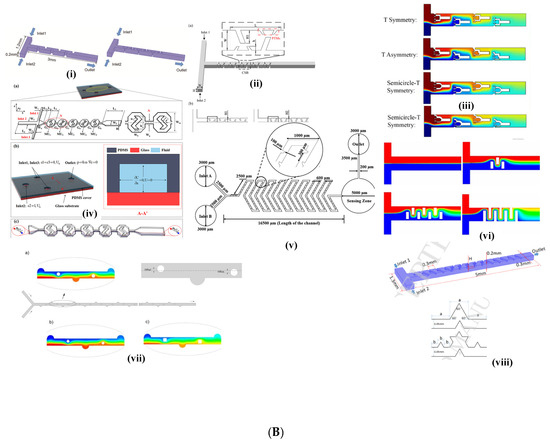 - Shanbhag, V.V.; Mukherjee, J.; Pandit, A.B. Analytical and numerical investigations of mixing fluids in microchannel systems of different geometrical configurations. Can. J. Chem. Eng. 2022, 100, 2217–2229. [Google Scholar] [CrossRef]