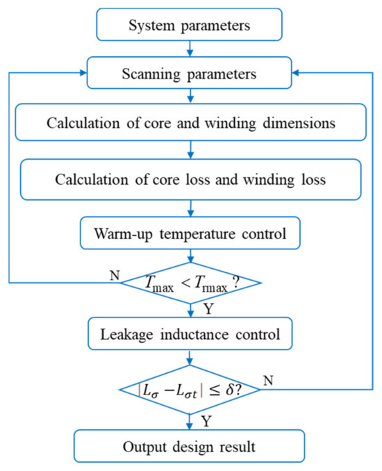 The optimal design of magnetic devices such as transformers and inductors follows the same rules of appeal. The multi-objective optimization method is a commonly used design method in magnetic devices and its flowchart is shown in Figure 2.