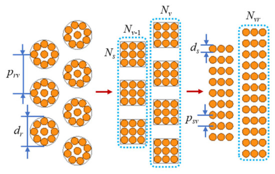 The loss analytical methods for the windings with Litz wire are generally based on Dowell’s method and Ferreira’s method. The Litz wire can be equated to solid wire as shown in Figure 4.