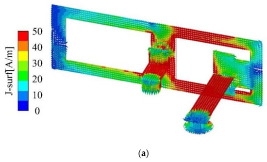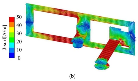 These strategically placed T-shaped slots serve a specific purpose: to modify the current distribution on the ground plane, ultimately improving isolation between antennas. As depicted in Figure 8, the accumulation of surface current near these T-shaped slots impedes current flow, effectively minimizing interference among the antennas.