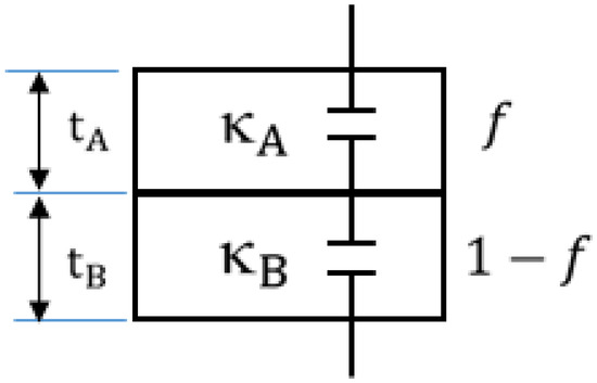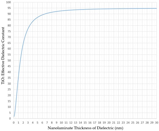 Suppose are bulk dielectric constants for materials A and B and are calculated dielectric constants of their respective nanolaminates with , the volumetric filling factor for material A, and is the volumetric filling factor for material B, in a two-phase dielectric system of Figure 3.