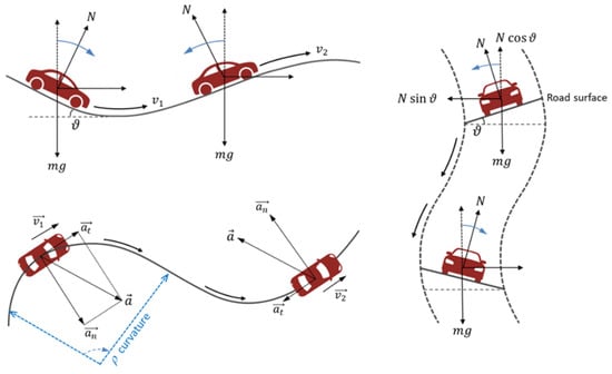 The new generation of vehicles is currently able to supply advanced assistance to the driver in their driving tasks [,,] by playing an active role in safety issues, such as electronic stability control (ESC) [], antilock braking (ABS) [], and the newer Advanced Driver Assistance Systems (ADAS) [,,], as well as by managing in-car navigation and positioning technologies based on Inertial Measurement Units (IMUs), Global Positioning Systems (GPSs), and map matching [,,]. Moreover, vehicles are already connected [,,], since they can link with smartphones, providing emergency roadside assistance, real-time traffic alerts, and circulation [,,,], laying the basis for the effective and functional development of Intelligent Transport Systems (ITSs), or “smart mobility” [,].