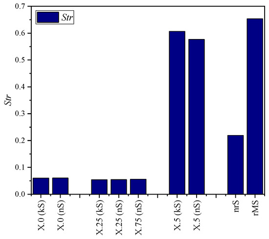 The quantitative evaluation of the kinematic (kS) and numerical simulated (nS) surfaces and the real microstructure (rMS) was carried out using the parameters presented in Section 2.1. These are compared in diagrams in Figure 8, Figure 9, Figure 10, Figure 11 and Figure 12.
