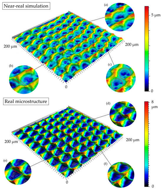 All simulated microstructures and their real surfaces are shown in Table 6. For visual comparability, the height scale, illustrated in (i), was normalized for all surfaces (from −10 µm to 10 µm) and the zero level was centered.
