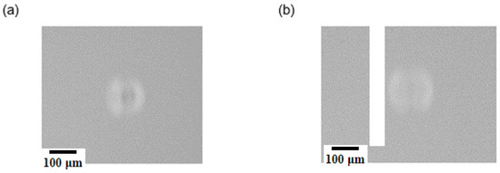 (a) Empty droplet image with diffuse anterior illumination. (b) Droplet containing a spheroid imaged with diffuse anterior illumination. A comparison of the two images shows no significant difference, which makes a detection of spheroids impossible.