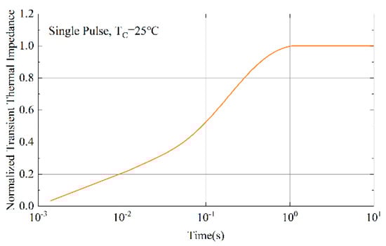Figure 4 shows the thermal impedance test curve of CM1200HC-66H. After the power device is turned on for 1 s, the thermal impedance of IGBT basically reaches a steady state. Therefore, the steady-state thermal impedance value is taken when calculating the junction temperature of the power device in the traction inverter.