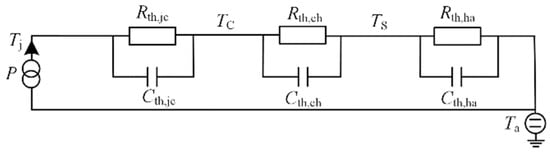 There are currently two main thermal network models: the Cauer model and the Foster model []. The Cauer model is a model directly established according to the actual physical layer and material layer of IGBT. But, it is difficult to obtain the parameters of this model. Although Foster has no actual physical meaning, the parameters of this model are easily obtained from actual measurements, so the model is more widely used.