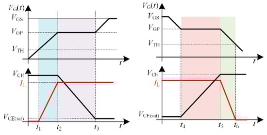 The loss of IGBT is divided into switching loss and on-state loss. Firstly, the switching loss is analyzed. Figure 9 shows the typical turn-on and turn-off waveforms of IGBT. In order to simplify the analysis process, the waveforms are linearized.