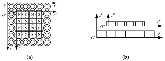 where and are the and magnets along the x-axis and y-axis directions, respectively; , , and are the length, width, and height of the big magnet, respectively; and , , and are the length, width, and height of the small magnet, respectively.