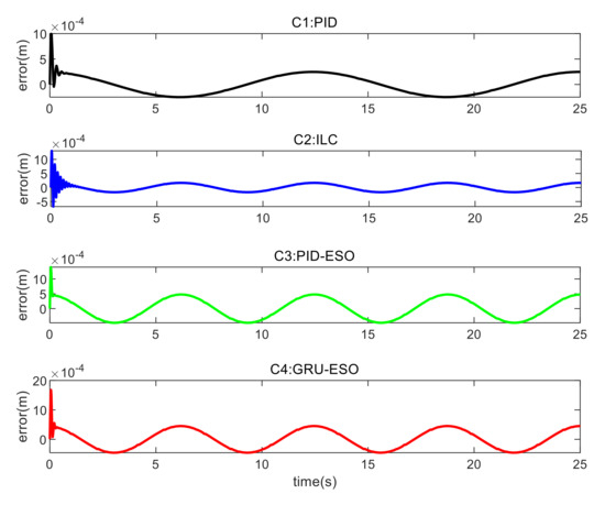 To provide a sufficient comparison, a traditional PID, ILC, PID-ESO, and the proposed GRU-ESO are implemented.