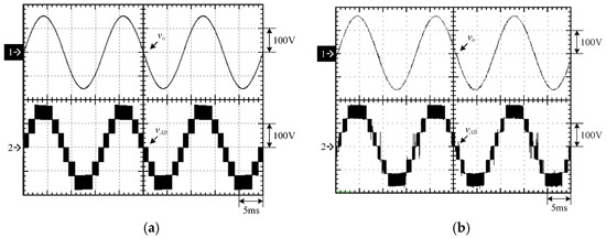 Table 2 shows the specifications of the switching capacitor DC–AC converter proposed in this paper. The converter proposed in this paper adopts the utility voltage provided by the Taiwan Power Company, i.e., the rms output voltage is 110 V, its output frequency is 60 Hz, and its output power is 500 W. The prototype of the converter can be used in the AC power system for mobile lighting equipment and small household appliances. Table 3 shows the components and parameters of the voltage sampling circuit in this paper.