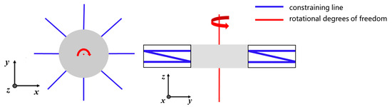 To achieve two degrees of freedom in the rotational space, we need two separate compliant rotational motion modules placed in series, each for its respective degree of freedom. The design of the rotational DOF (Domain Of Freedom) module is fundamental to the mechanism’s overall design. Similar to the design of the compliant translation module, we need to create a corresponding constraint space first as shown in Figure 5. The distribution of this constraint space is vital to ensure the mechanism’s efficiency and performance.