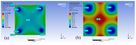 In the context of compliant mechanisms, it is important to consider the principle of self-elimination of thermal distortion. When compliant translation mechanisms or compliant rotation mechanisms are exposed to heat, they will deform accordingly. Due to their significantly lower stiffness in a particular direction compared to other directions, thermal deformation tends to occur in that direction. However, the deformation mode shown in Figure 7 does not negatively affect the accuracy of the positioning or motion of the upper platform. Therefore, this mechanism can be considered a self-elimination mechanism for thermal distortion.