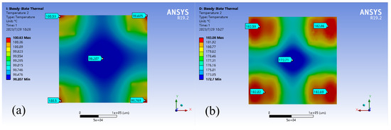 Temperature of the print platform at thermal equilibrium. (a) With the compliant connector; (b) Without the compliant connector.