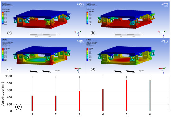 Natural frequencies of the proposed mechanism. (a) 1st; (b) 2nd; (c) 3rd; (d) 4th; (e) 6 orders.