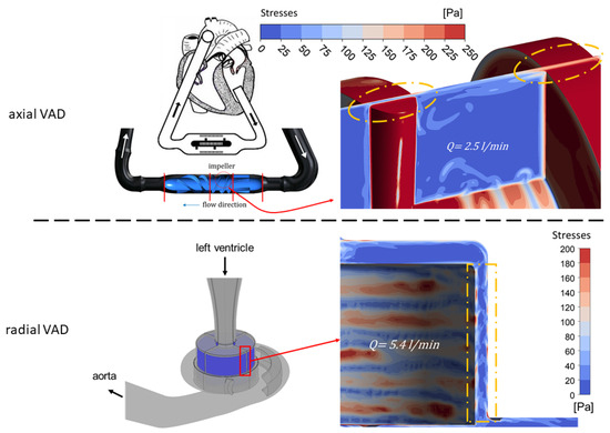 - Zhang, J.; Chen, Z.; Griffith, B.P.; Wu, Z.J. Computational characterization of flow and blood damage potential of the new maglev CH-VAD pump versus the HVAD and HeartMate II pumps. Int. J. Artif. Organs 2020, 43, 653–662. [Google Scholar] [CrossRef] [PubMed]