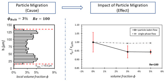 - Section 2—CFL Development: The literature has shown that particle-laden flows exhibit a development length for particle migration to reach an equilibrium position and establish a steady-state CFL height [28].