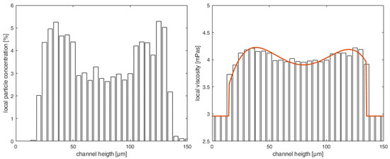 - Section 3—Heterogeneous distribution with steady-state CFL: Once the equilibrium position of the particles is attained and a steady-state CFL is established, the optically measured data from particle distributions (see Figure 3 and Figure 6) are utilized to define the heterogeneous viscosity distributions for the simulations.
