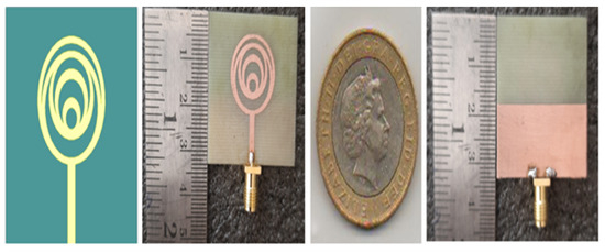 - Safa, O.A.; Omar, A.; Nedil, M. CPW-fed UWB antenna based on packing congruent circles in a circular patch. In Proceedings of the 2016 5th International Conference on Electronic Devices, Systems and Applications (ICEDSA), Ras Al Khaimah, United Arab Emirates, 6–8 December 2016; pp. 1–3. [Google Scholar]