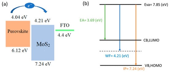 Schematic representation of (a) the energy-level diagram (b) HOMO-LUMO band diagram of the proposed MoS2.