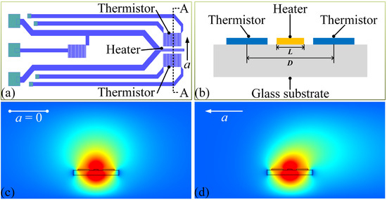 Various methods have been explored to alleviate thermal conduction between the heater and substrate and further reduce the power consumption of the sensor. These methods include positioning the heater and thermistors on suspended membranes or elevating them above the substrate [24,25,26,27]. However, the constructed suspended structures often lack resilience against vibrations or shocks [28,29], and thermal stress variations caused by temperature changes can negatively affect sensor performance [28,30,31].