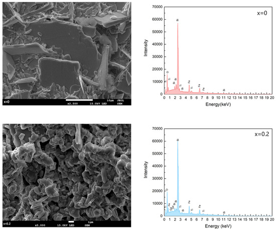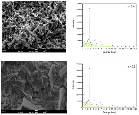 3.2. Scanning Electron Microscopy and X-ray Microanalysis (EDS)