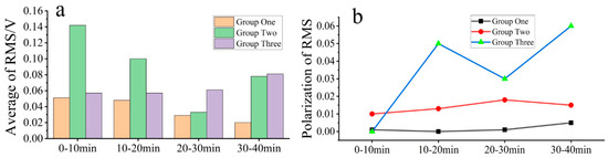 RMS of samples per noise segment; (a) average of RMS and (b) polarization of RMS.
