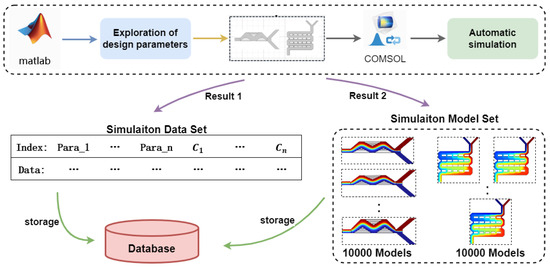 To facilitate the use of artificial neural networks to predict the outlet concentration of mixer designs, this section utilizes finite-element simulation software to build a database, the data from which will be used to train the neural network models. The specific process is illustrated in Figure 3.