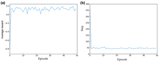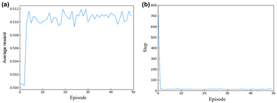 For mixer design 2, the training process is illustrated in Figure 10. The x-axis represents the number of iterations of training, while the y-axis denotes the average reward value per iteration. Figure 10a describes the convergence process of the DQN optimization algorithm. Initially, the agent’s average reward values were low. Through interaction with the simulation environment and utilizing cANN2 to predict the mixer design outlet concentration values based on the current structural design parameters, as well as calculating corresponding the reward values, the agent adjusted its actions accordingly. After 50 iterations, the agent quickly converged, ultimately yielding a set of optimized parameters.