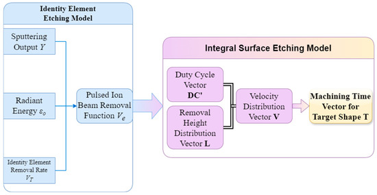 This paper presents a model for etching the unit surface element, followed by an overall etching region model from point to surface. Finally, the target etching region processing time vector is derived from the expansion of the overall etching region etching model on the time scale. The comprehensive framework of model for pulsed ion beam etching is depicted in Figure 1.