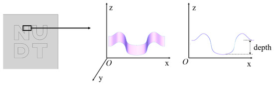 Figure 7 shows the process for estimating etching depth in rectangular areas with a uniform selected etching depth and etching edge on both sides of the flat. The letter etching pattern differs for each processing area. The depth of the rectangular area is estimated through the step section.
